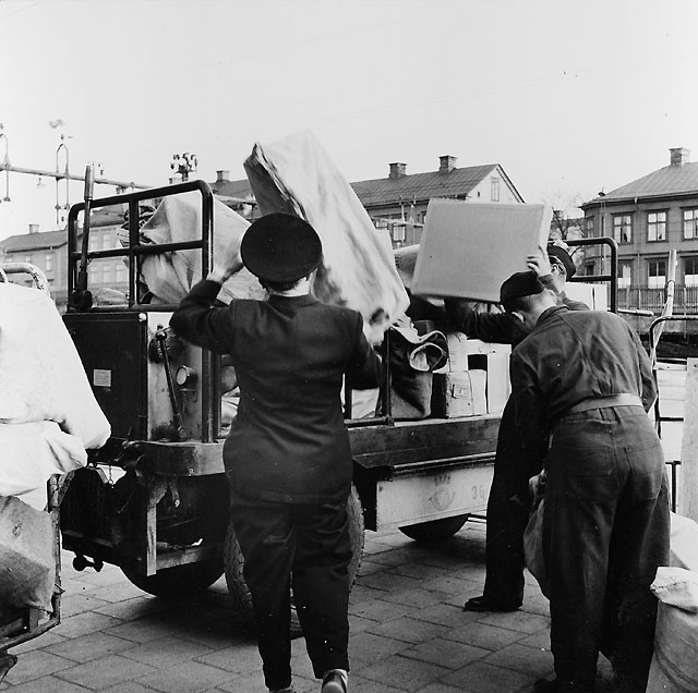 Trucken och släpvagnen med posten till järnvägen och postkupéerna