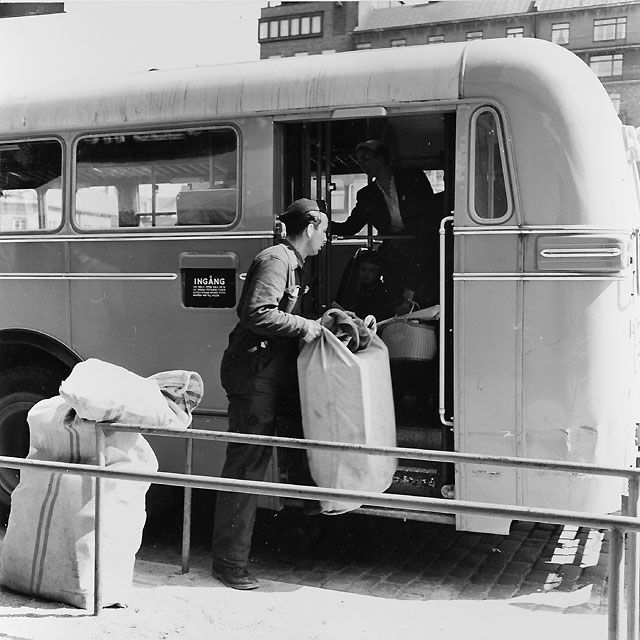 Chaufför Tyko öst lastar in postsäckar från postkontoret Eskilstuna