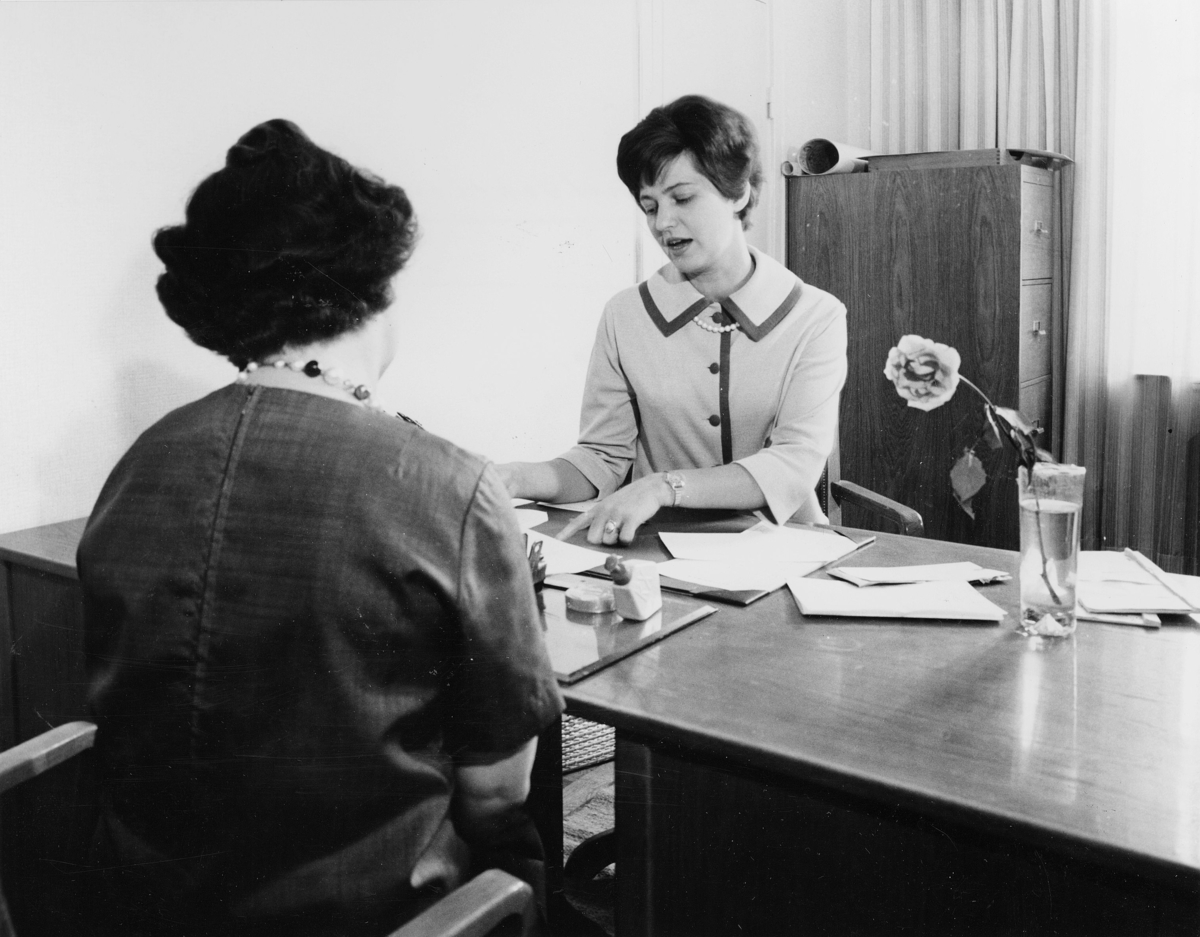 Personalkonsulent Siv Hermansson (t.h.), i personligt samtal, i sitt tjänsterum.