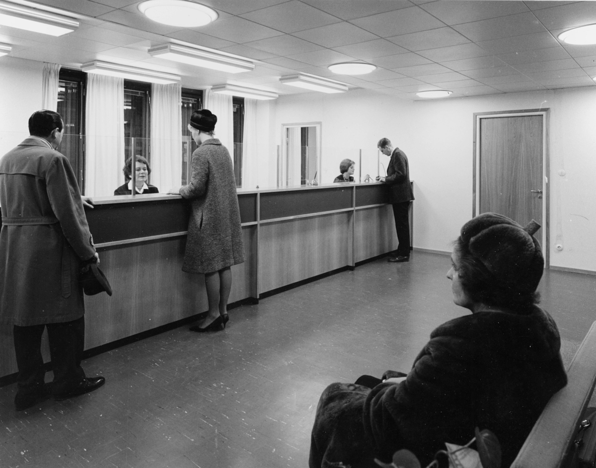 Sparbanksexpeditionen i våningen 2 trappor. Kundexpeditionen.