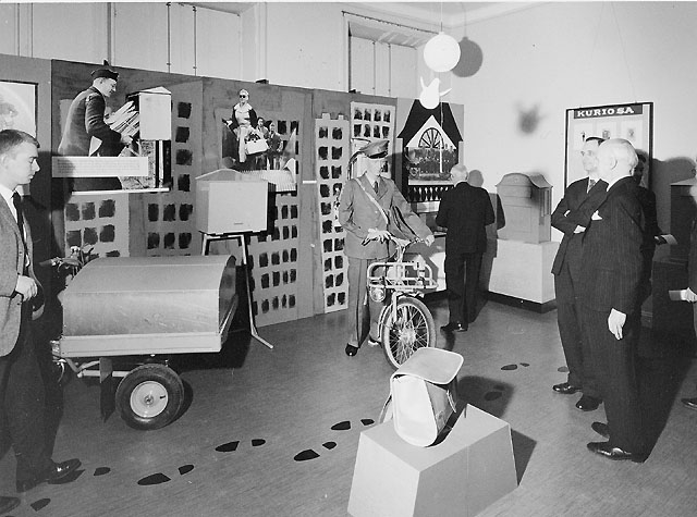 Föreningen Postmusei vänners ordförande (t.h.) i sal III.