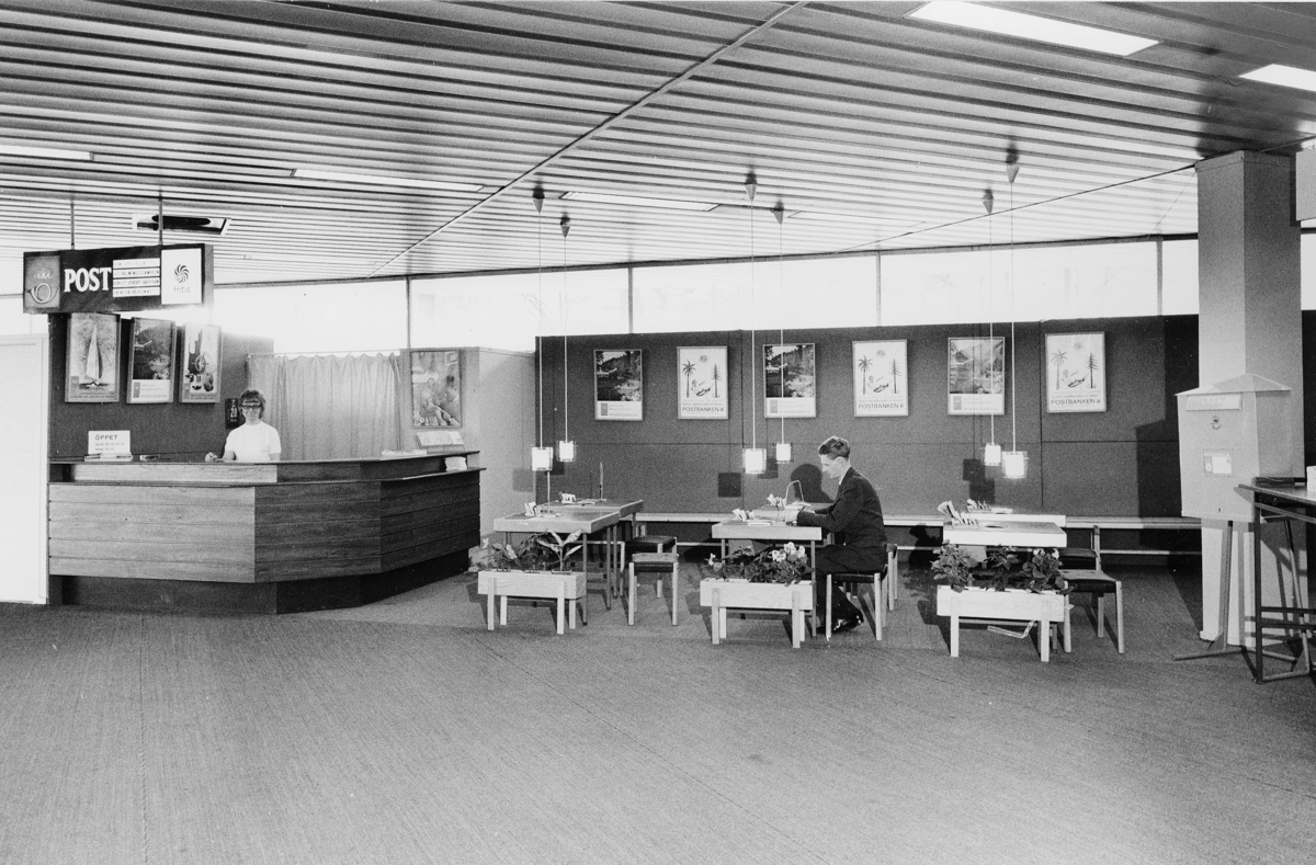 Tillfällig postexpedition med epx Lola Nygren bakom disken.