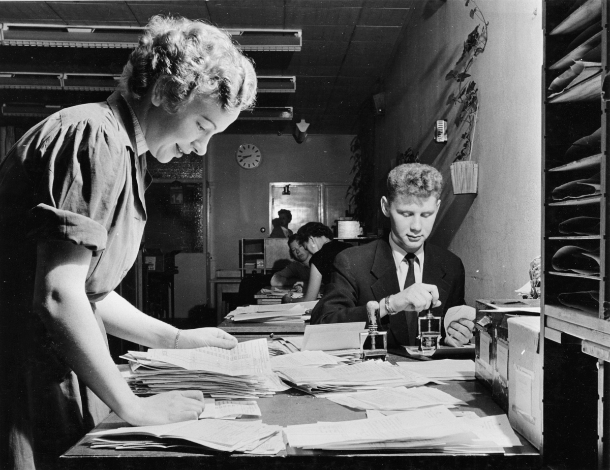 Fru Nordqvist finsorterar den till avdelningen ankomna posten, på