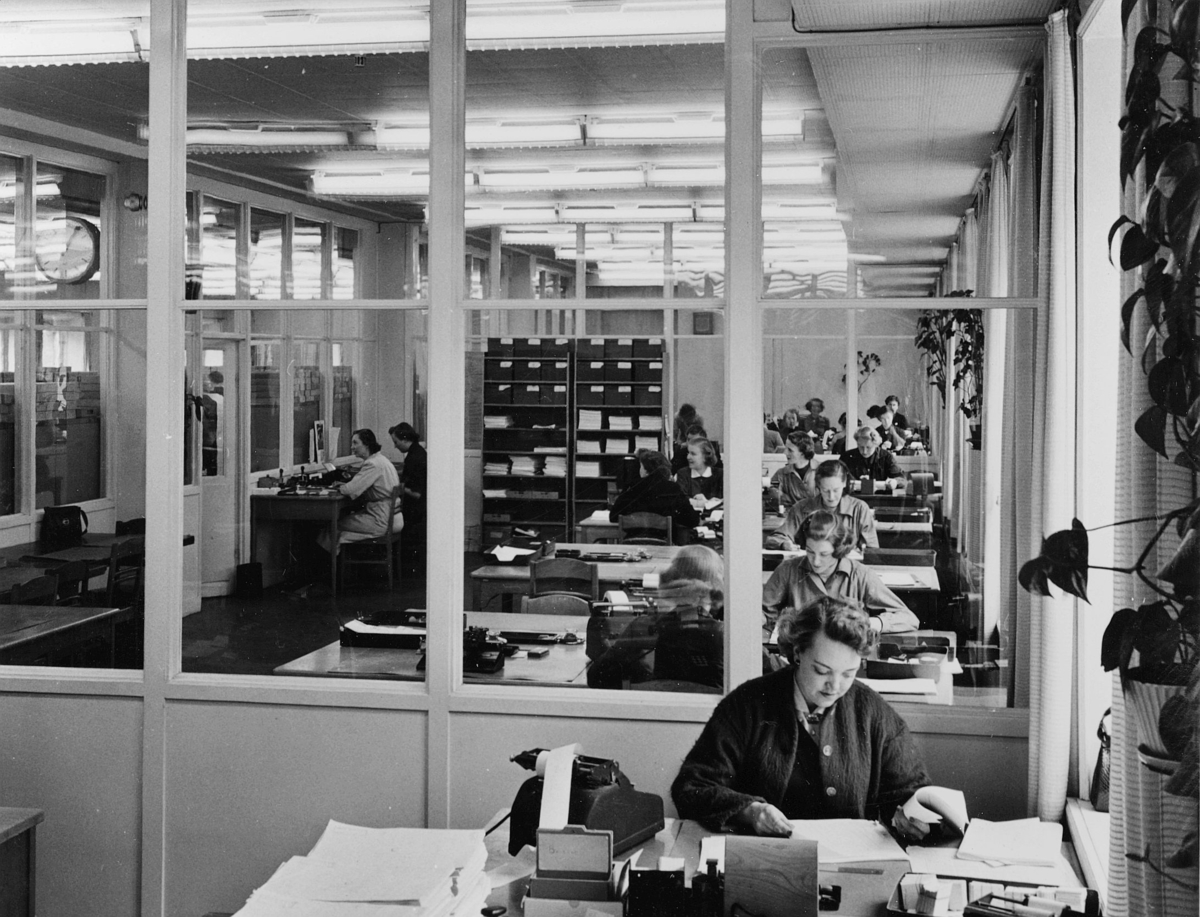 Granskningsavdelningen på bokföringen, på 3 tr. (till höger fönster