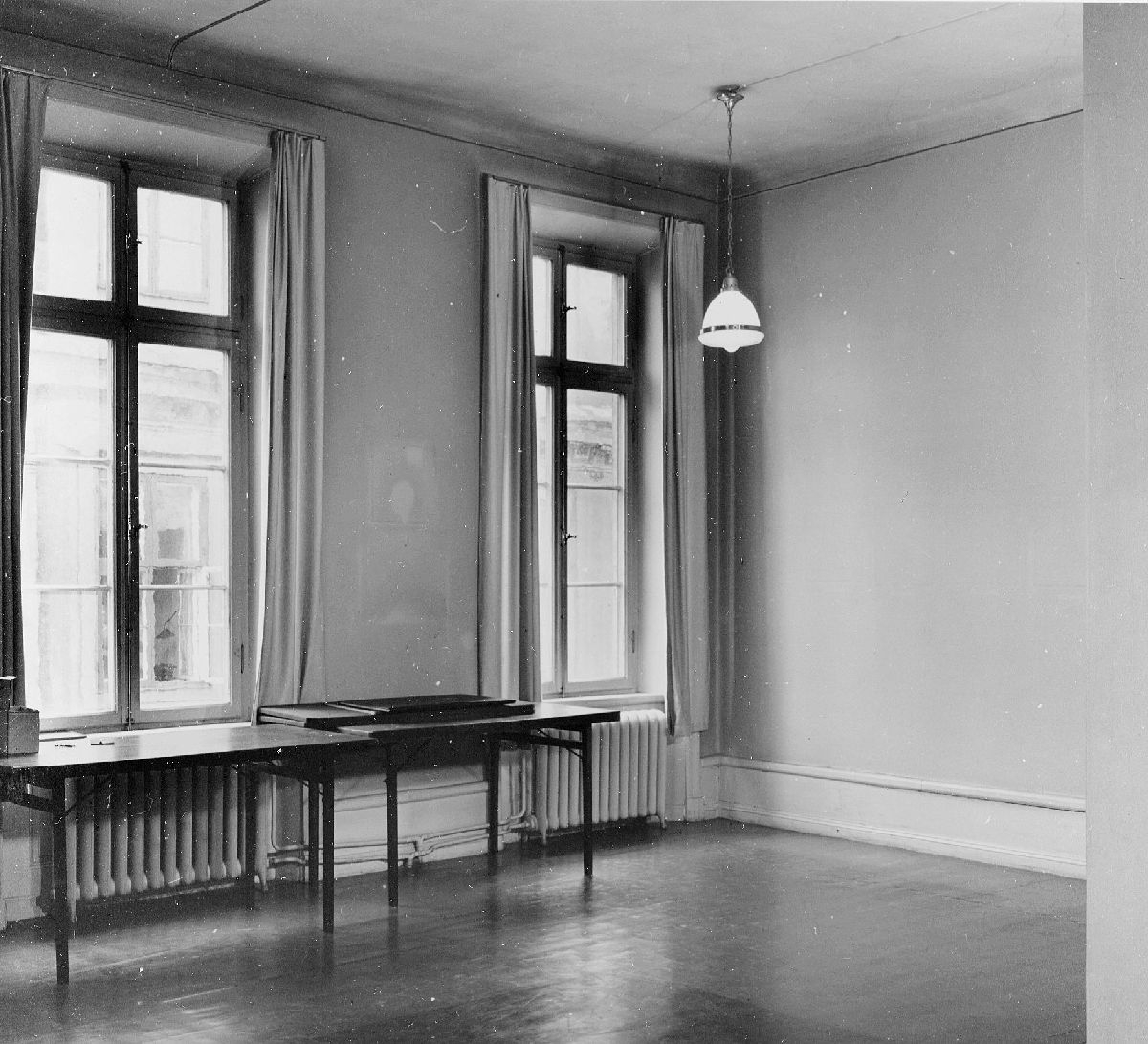 Titel: Rum nr 7 på 2 tr. (hörnrum Yxsmedsgränd-Munkbrogatan). Fönster mot Munkbrogatan.