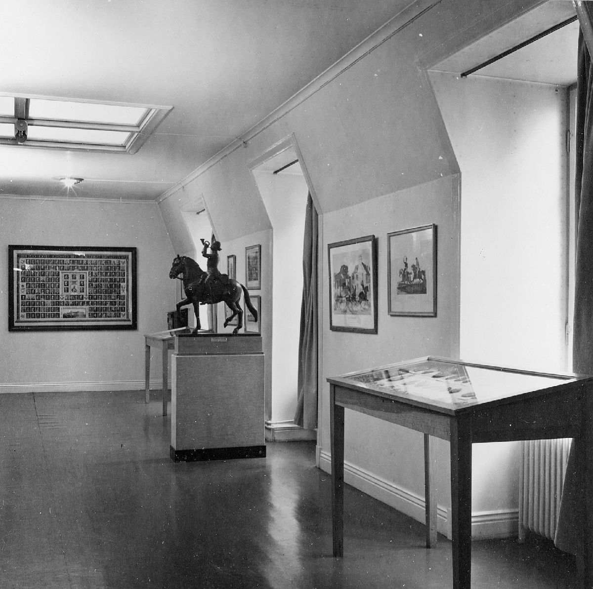 Titel: Historiska samlingarna i rum 6, utländska avdelningen på 2 tr.(med fönster utmed gården och Munkbro-gatan). Fönster åt Munkbrogatan.