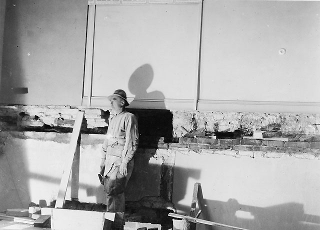 Reparationsarbeten i svenska frimärkssalen på 1 trappa. De gamla