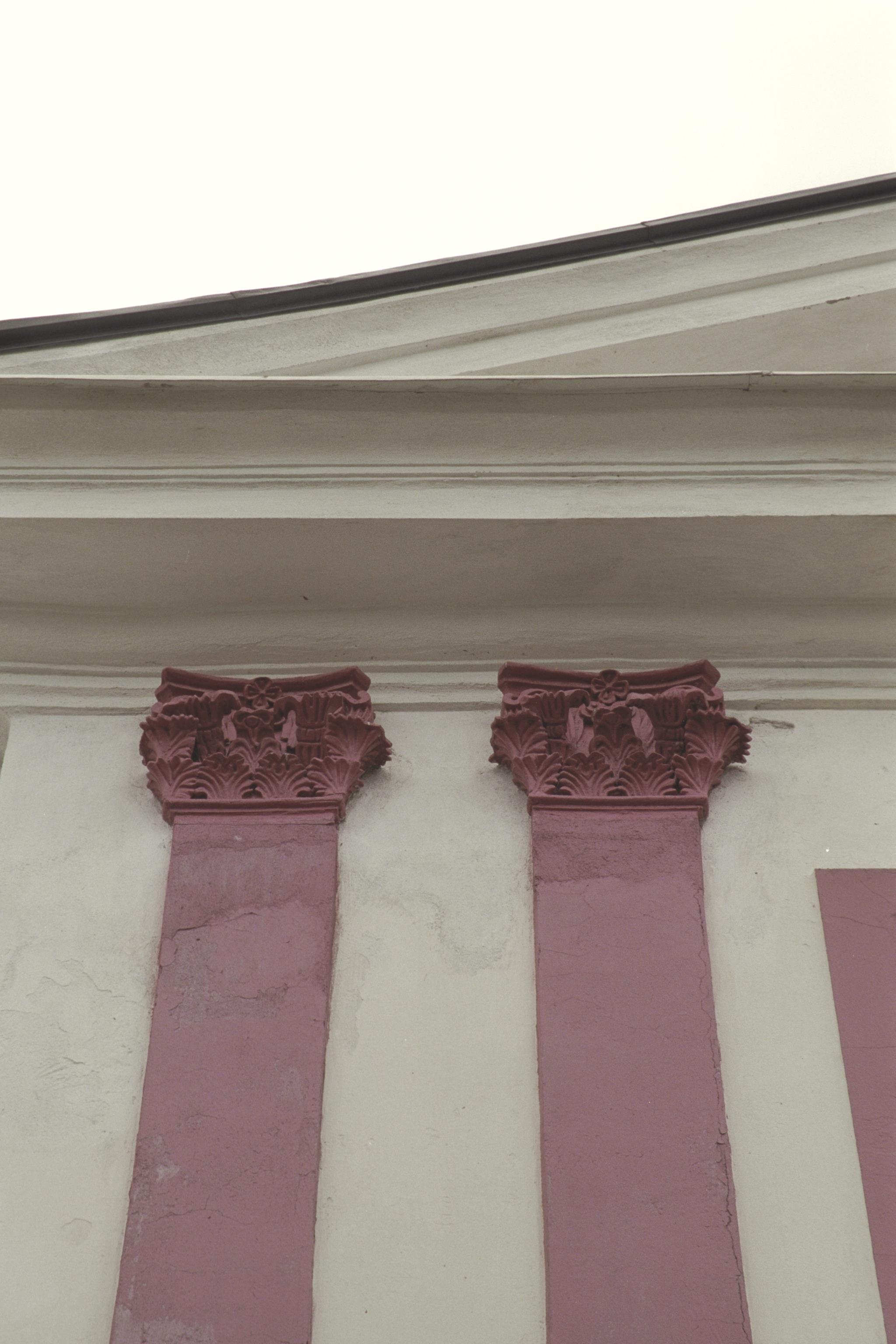 Huvudbyggnadens västra fasad, kapitälen längst till vänster.
