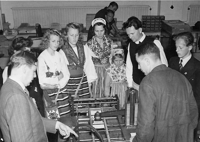 En automatisk adresseringsmaskin, citograf, studeras med intresse.