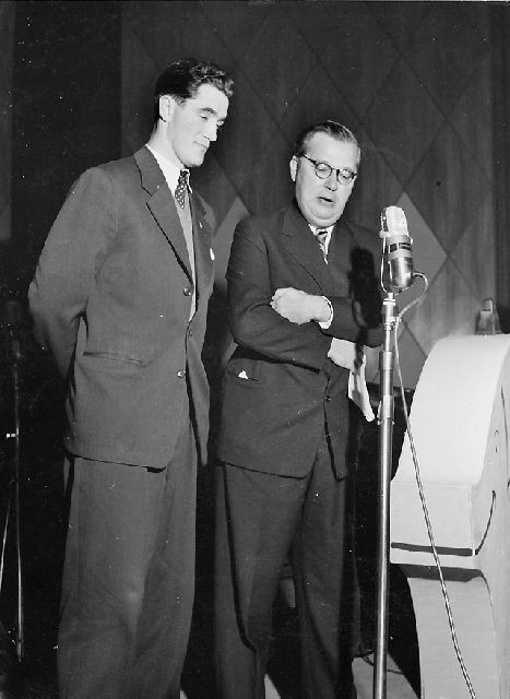Fotbollsstärnan Julle Gustafsson, Norrköping, intervjuas av Gösta