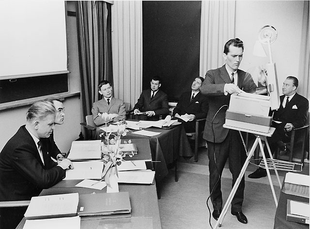 overhead-projektor som här manövreras av Rune Svensson, Nyköping. Fr