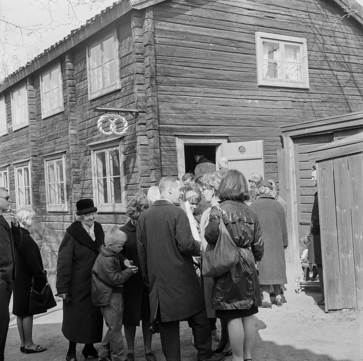 Besökare i Skansens stadskvarter utanför Bageriet.