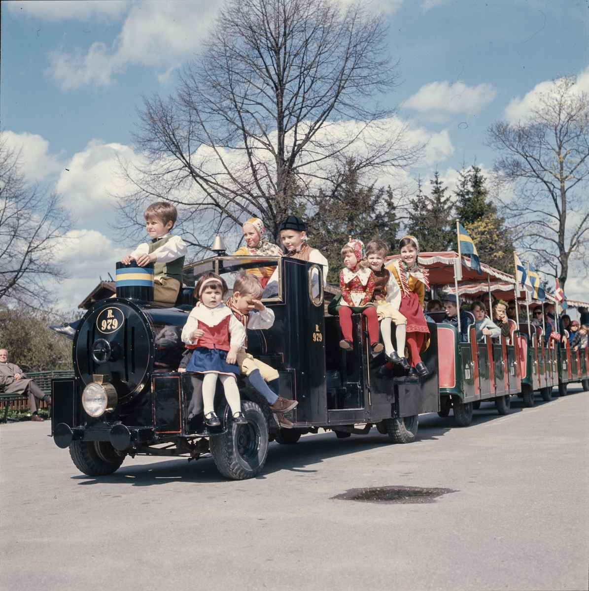 Barn iklädda folkdräkt har tagit över Skansentåget.