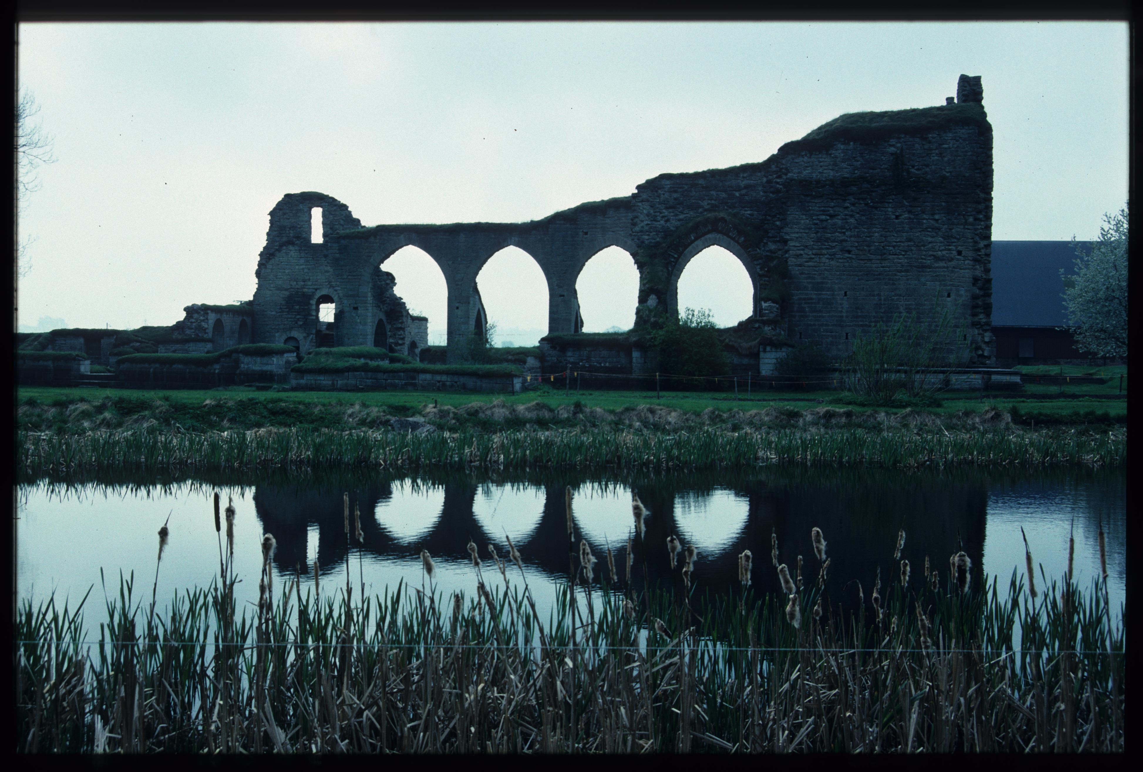 Västra Tollstad 1:1. Klosterkyrkan är 45x20 m (ÖNÖ-VSV), torvtäckta murar av kalksten, ca 1,2 m br och vanligen 1-1,5 m h.