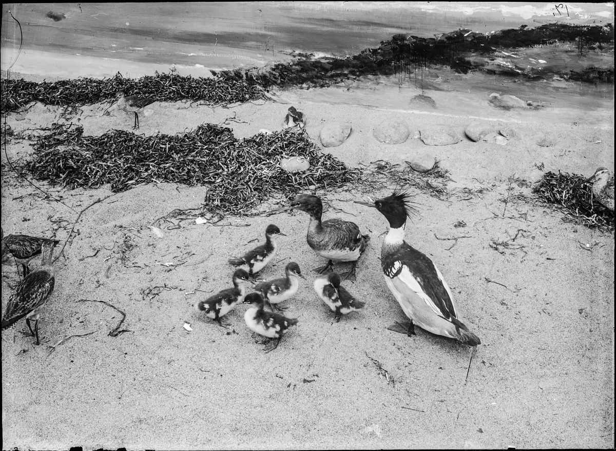 Diorama från Biologiska museets utställning om nordiskt djurliv i havs-, bergs- och skogsmiljö. Fotografi från omkring år 1900.