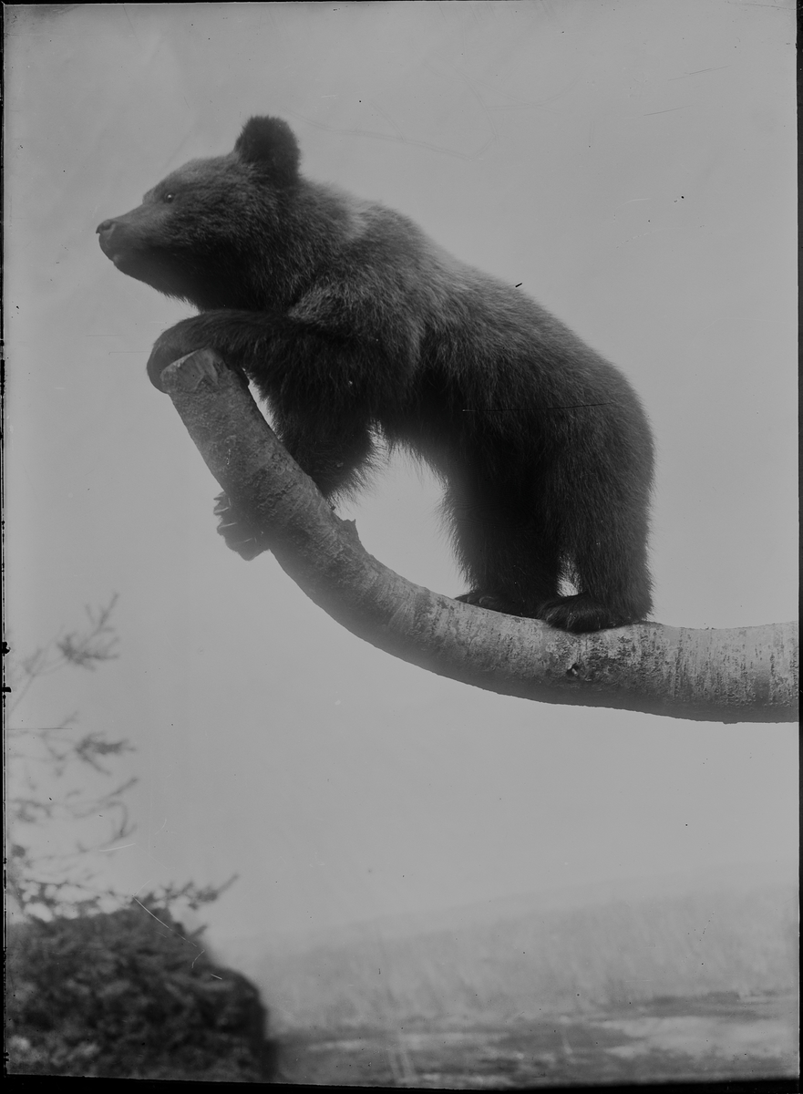 Diorama från Biologiska museets utställning om nordiskt djurliv i havs-, bergs- och skogsmiljö. Fotografi från omkring år 1900.