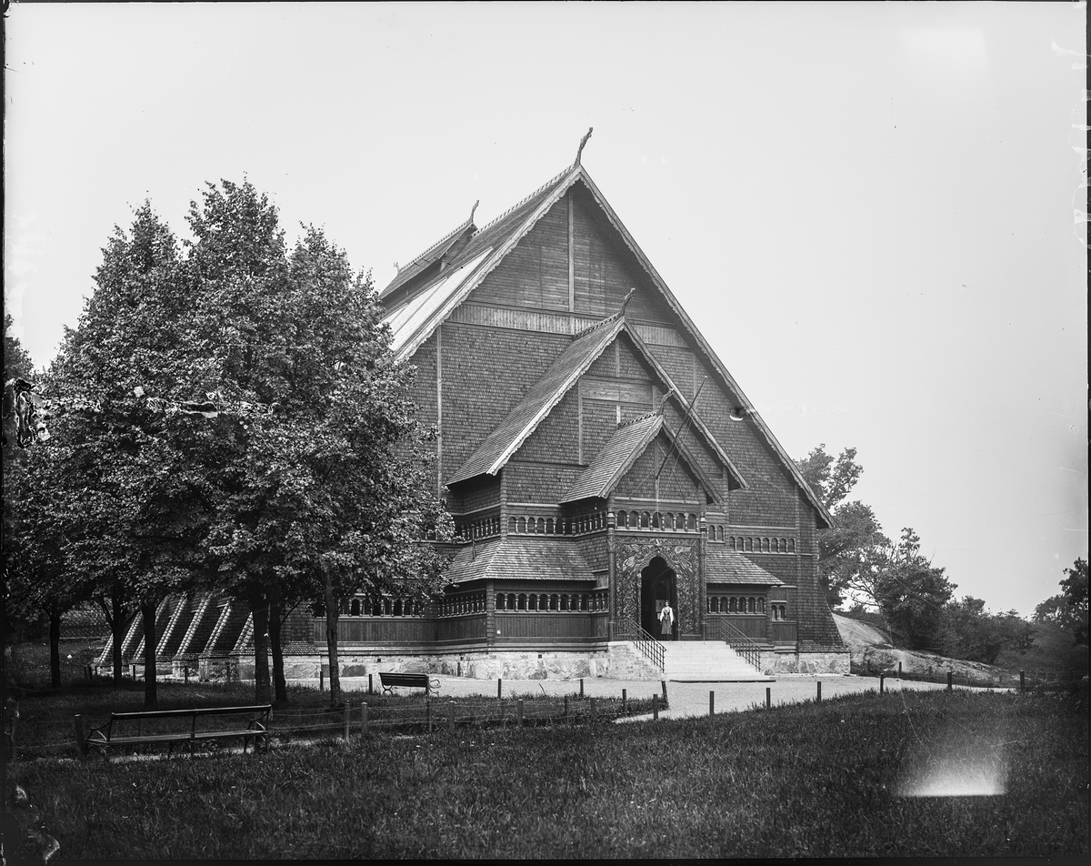 Biologiska museet. Arkitekt Agi Lindegren efter förbilder från norska stavkyrkorna i Borgund, Lom och Urnes. Fotografi från omkring 1900.