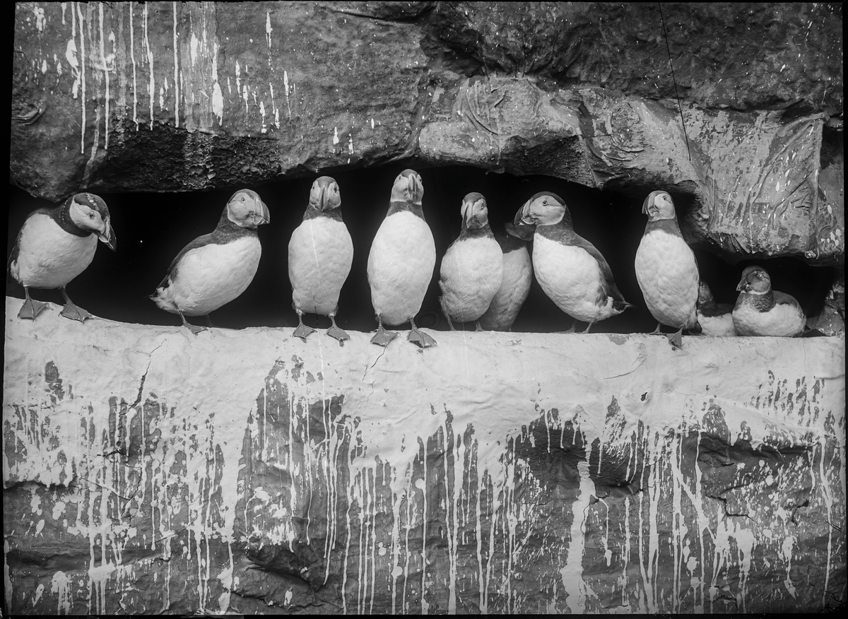 Diorama från Biologiska museets utställning om nordiskt djurliv i havs-, bergs- och skogsmiljö. Fotografi från omkring år 1900.