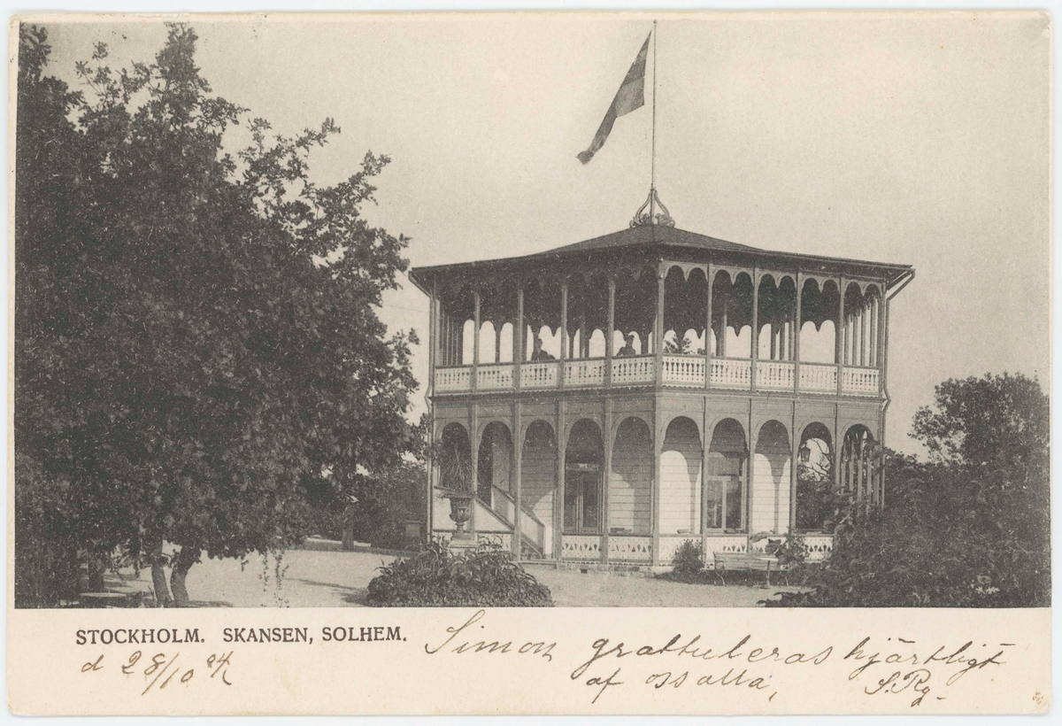 Vykort med motiv från Skansen. Solhem, utsiktstorn.