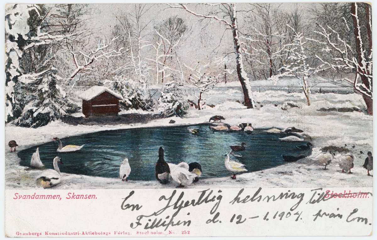 Titel: Vykort med motiv från Skansen. Svandammen.