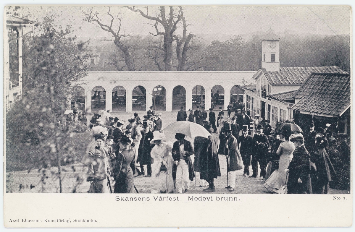 Titel: Vykort med motiv från Skansen. "Skansens vårfest. Medevi brunn."
