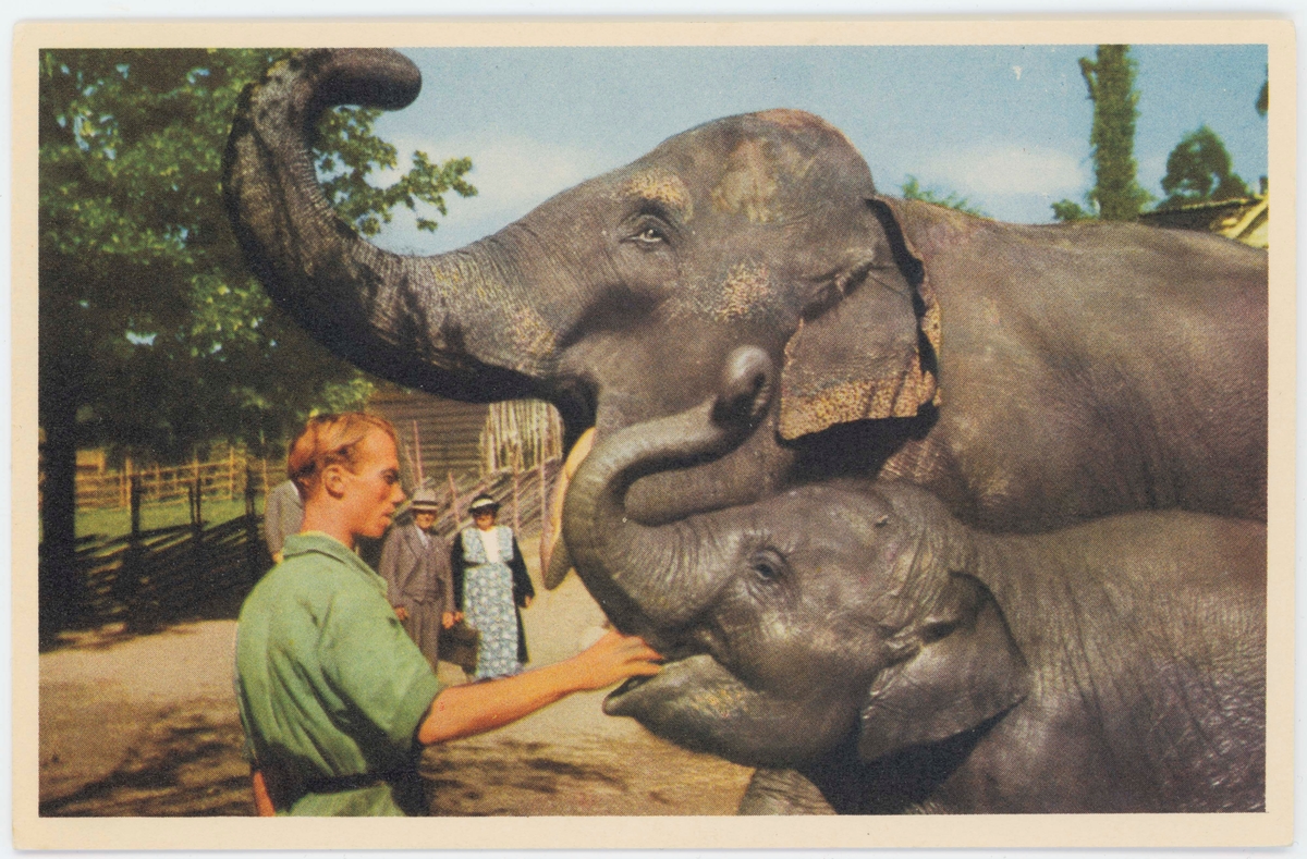 Titel: Vykort med motiv från Skansen."Elefanterna Lunkentuss och Bambina".