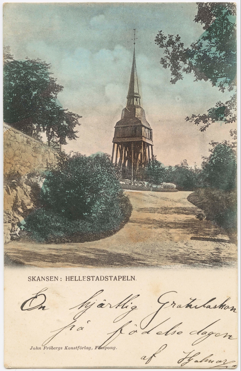 Titel: Vykort med motiv från Skansen. "Hellestadsstapeln"