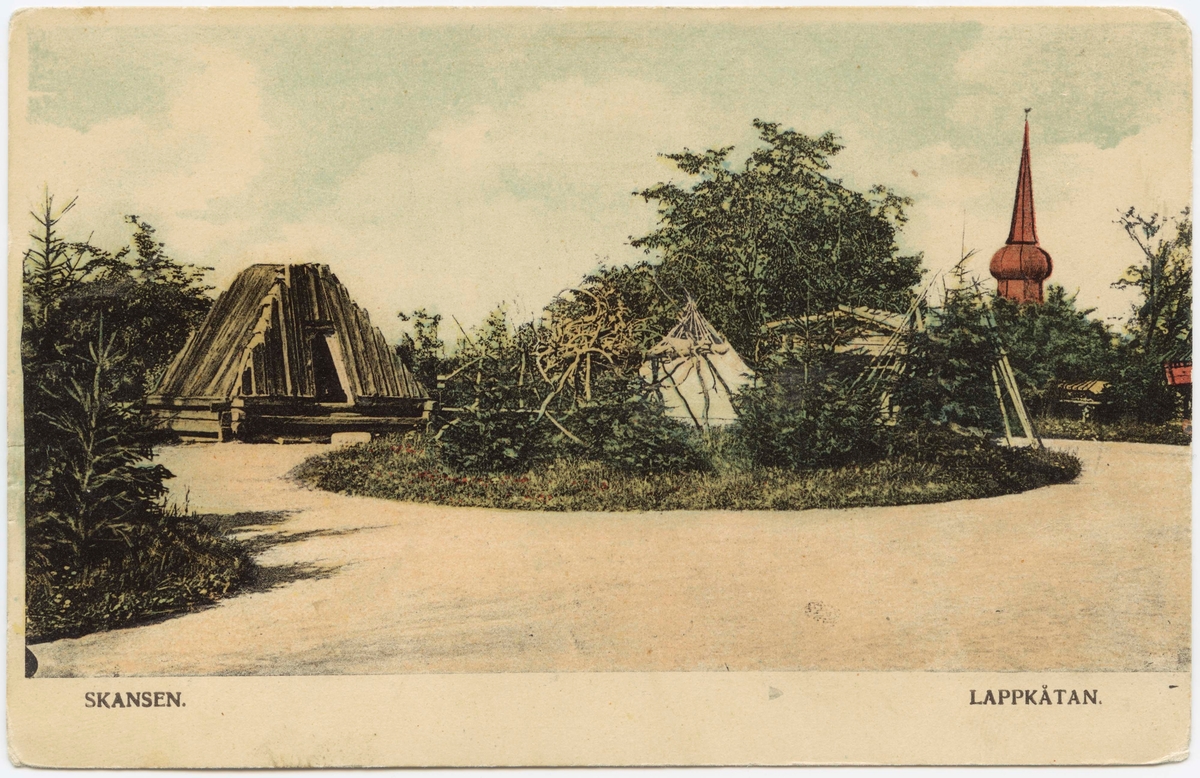 Titel: Vykort med motiv från Skansen. "Lappkåta"