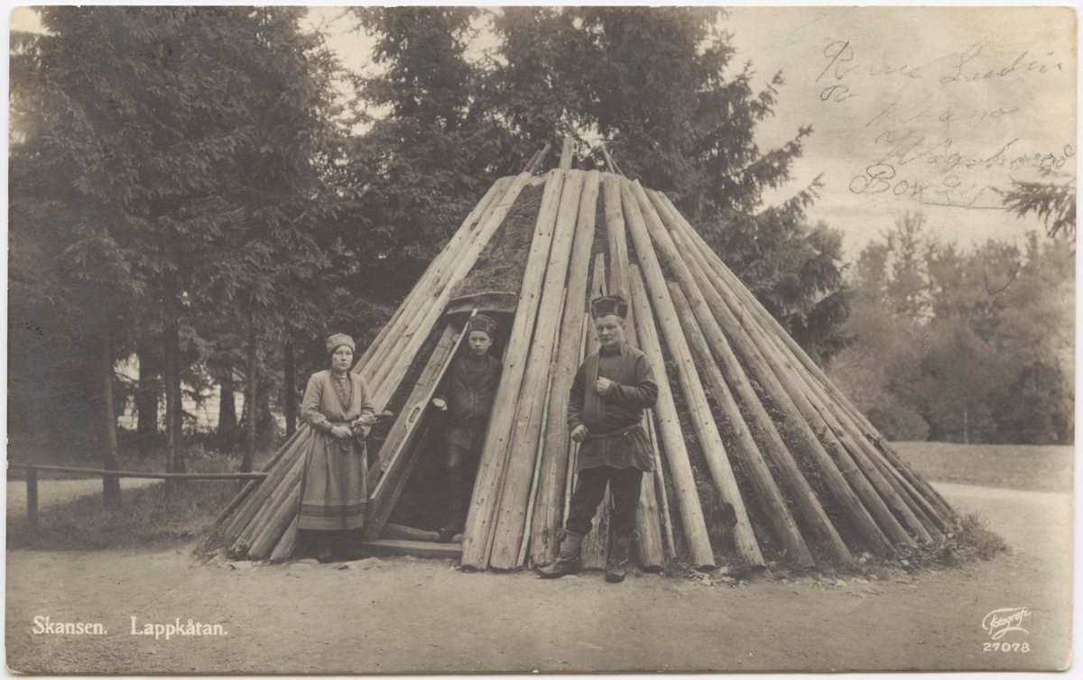 Titel: Vykort med motiv från Skansen. "Lappkåtan"