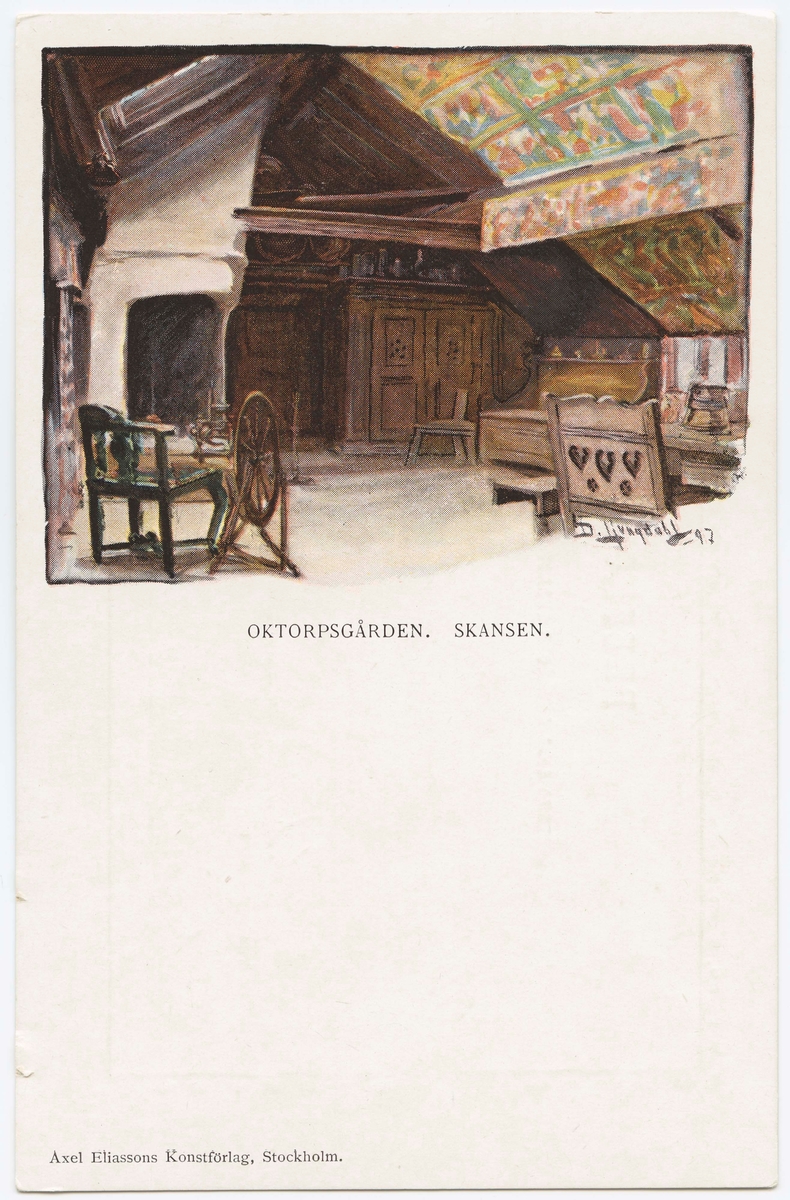 Titel: Vykort med motiv från Skansen. Oktorpsgården. Inetriör
