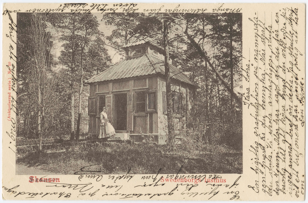 Titel: Vykort med motiv från Skansen. Swedenborgs lusthus