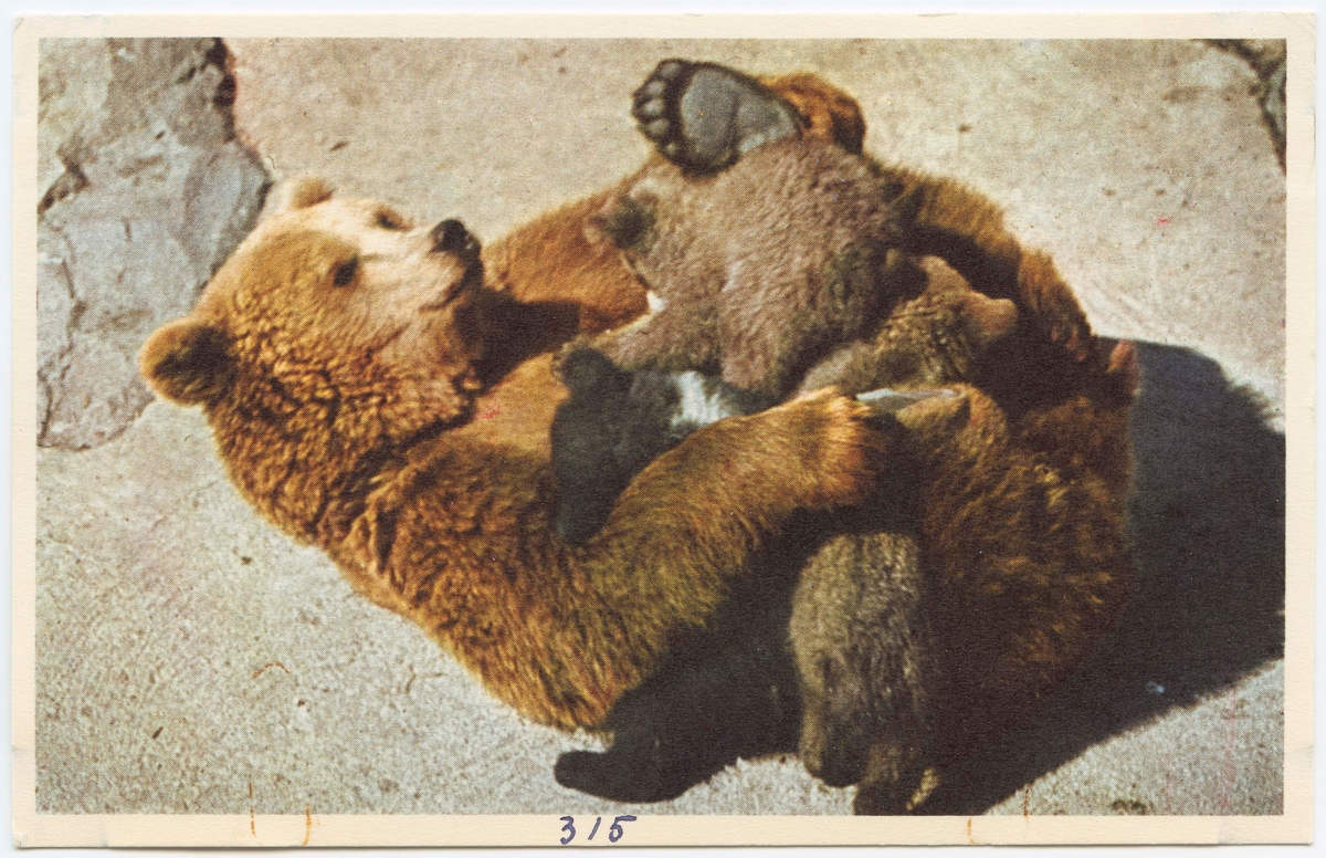 Titel: Vykort med motiv från Skansen. Björn med björnungar.