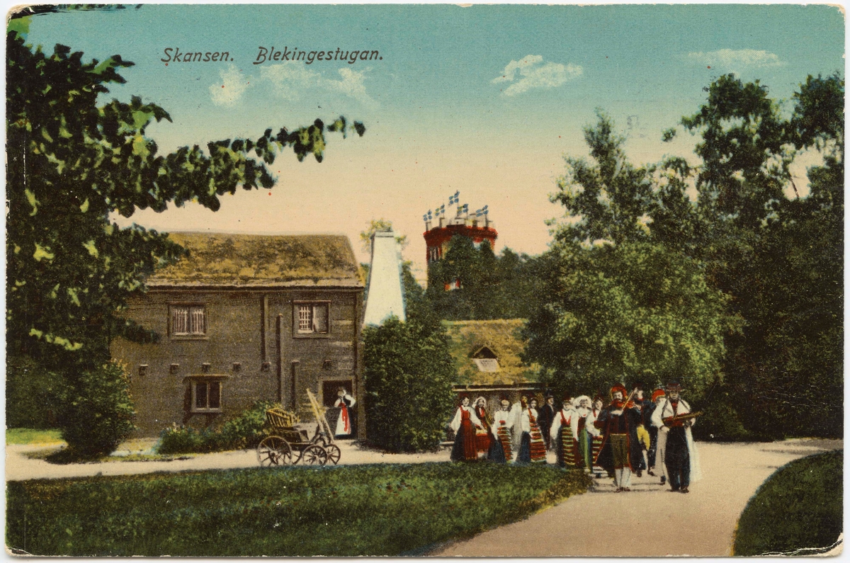 Titel: Vykort med motiv från Skansen. "Blekingestugan". Kyrkhultsstugan.
