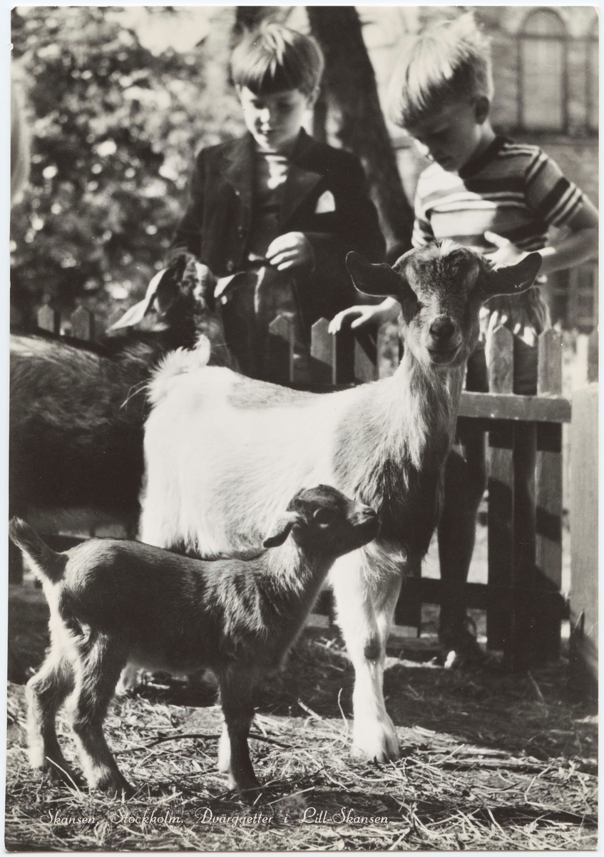 Titel: Vykort med motiv från Skansen. "Dvärggetter i Lill-Skansen."