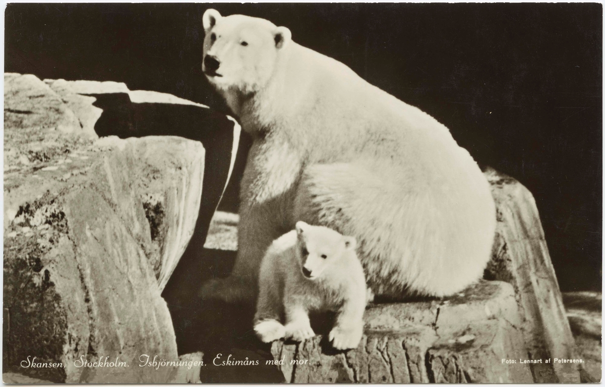 Titel: Vykort med motiv från Skansen. "Isbjörnsungen Eskimåns med mor."