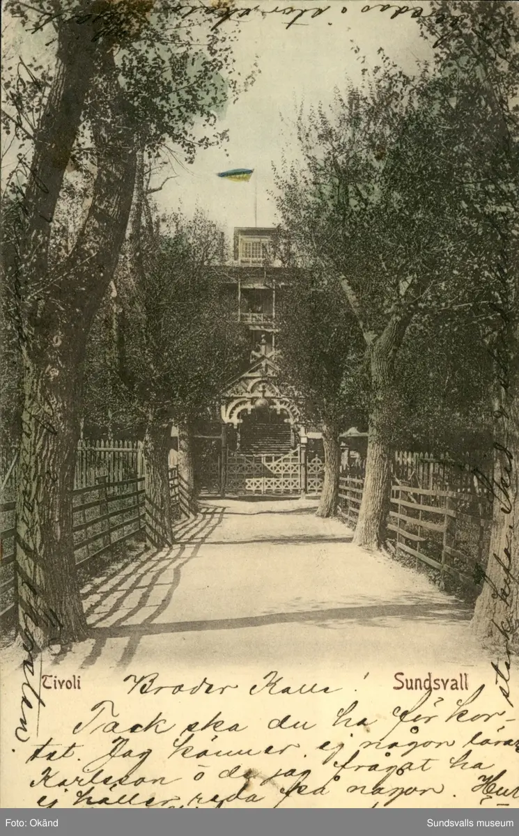 Vykort med motiv över entrén till Tivoli i Sundsvall.