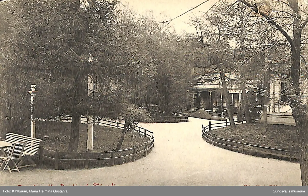 Vykort med motiv över parti av Tivoli i Sundsvall.