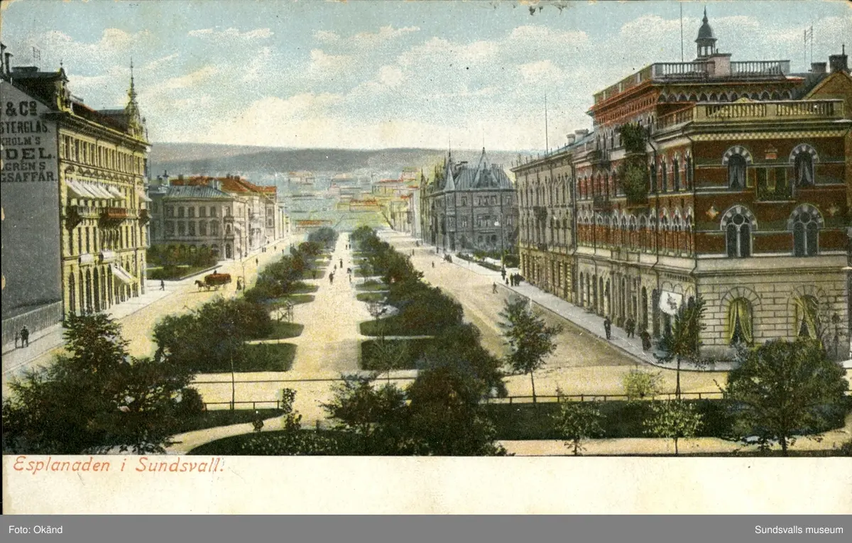 Vykort med motiv över Esplanaden i Sundsvall.