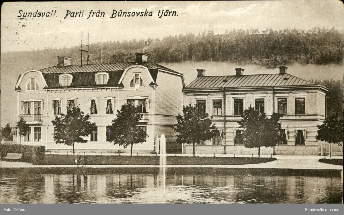 Vykort med motiv av parti från Bunsowska tjärn i Sundsvall.