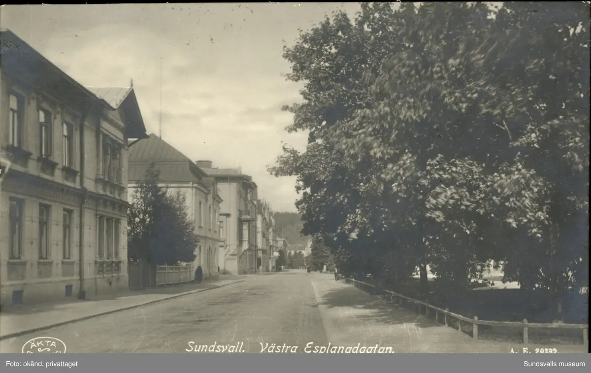 Vykort med motiv över västra Esplanadgatan i Sundsvall.