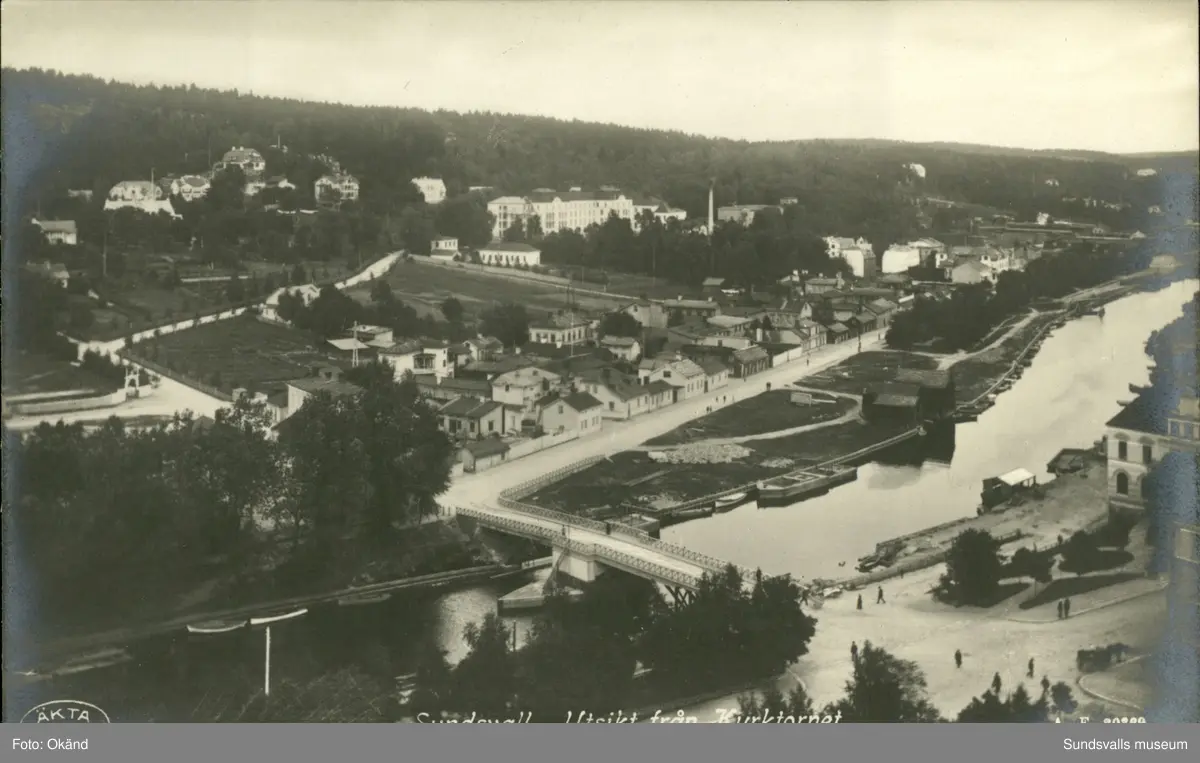 Vykort med motiv över Sundsvall från Gustav Adolfs kyrktorn över Norrmalm.