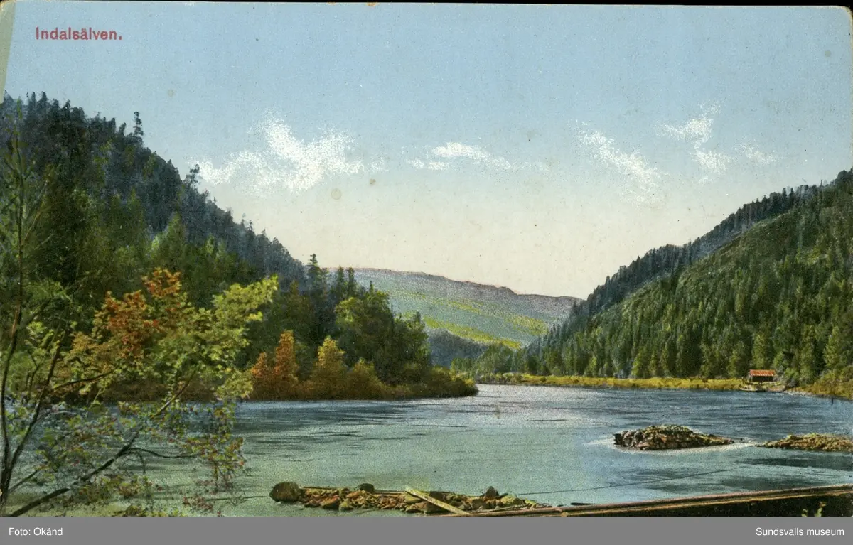 Vykort med motiv över Indalsälven vid Sillre i Liden.