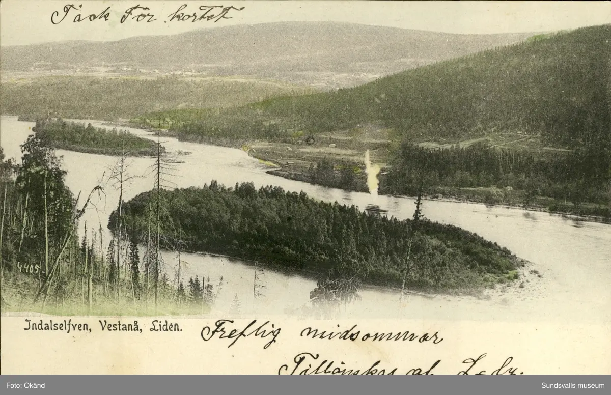 Vykort med motiv över Indalsälven vid Västanå i Liden.