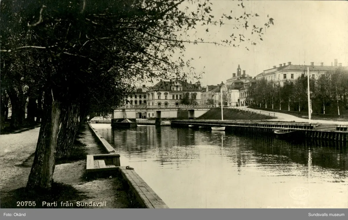 Vykort med motiv över Selångersån och Storbron i Sundsvall.