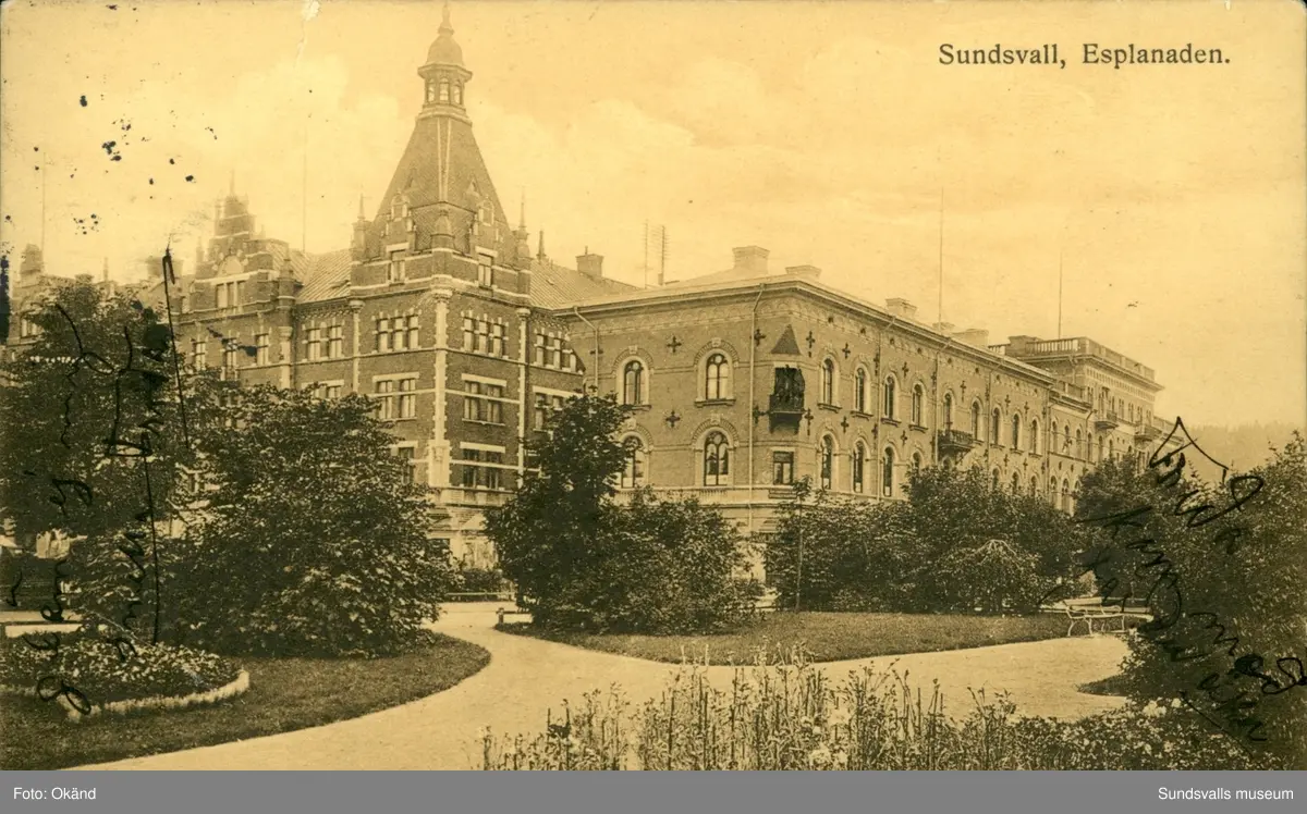 Vykort med motiv över Esplanaden i Sundsvall.