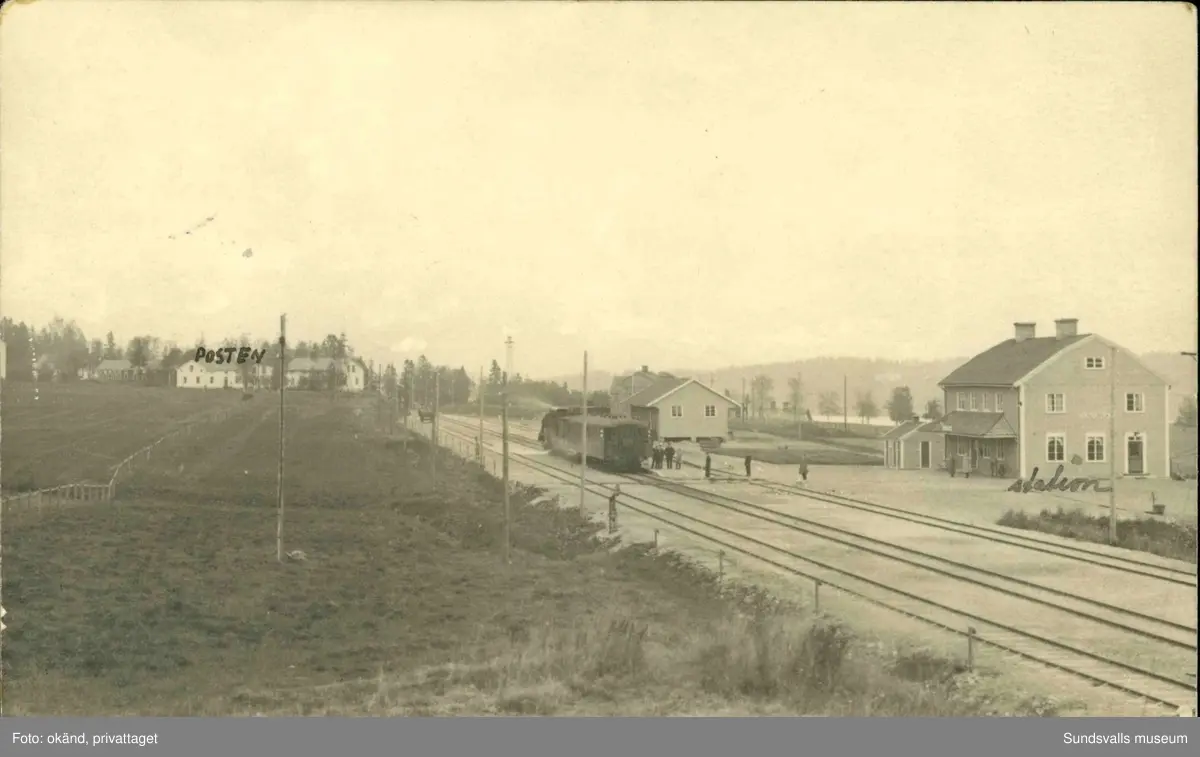 Vykort med motiv över järnvägsstationen och posthuset i Sundsbruk.