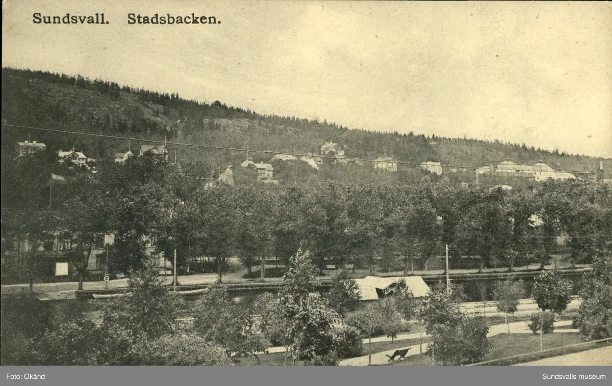 Vykort med motiv över Stadsbacken i Sundsvall.