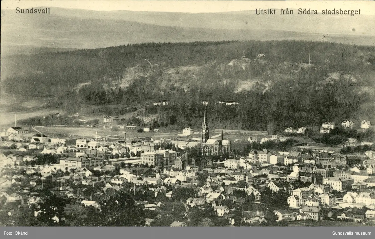 Vykort med motiv över Sundsvall från Södra Stadsberget.