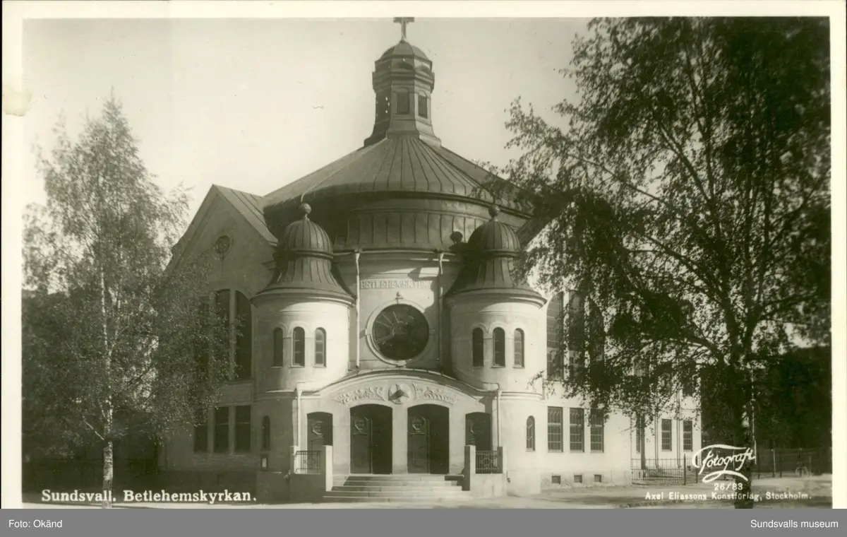 Vykort med motiv över Betlehemskyrkan i Sundsvall.