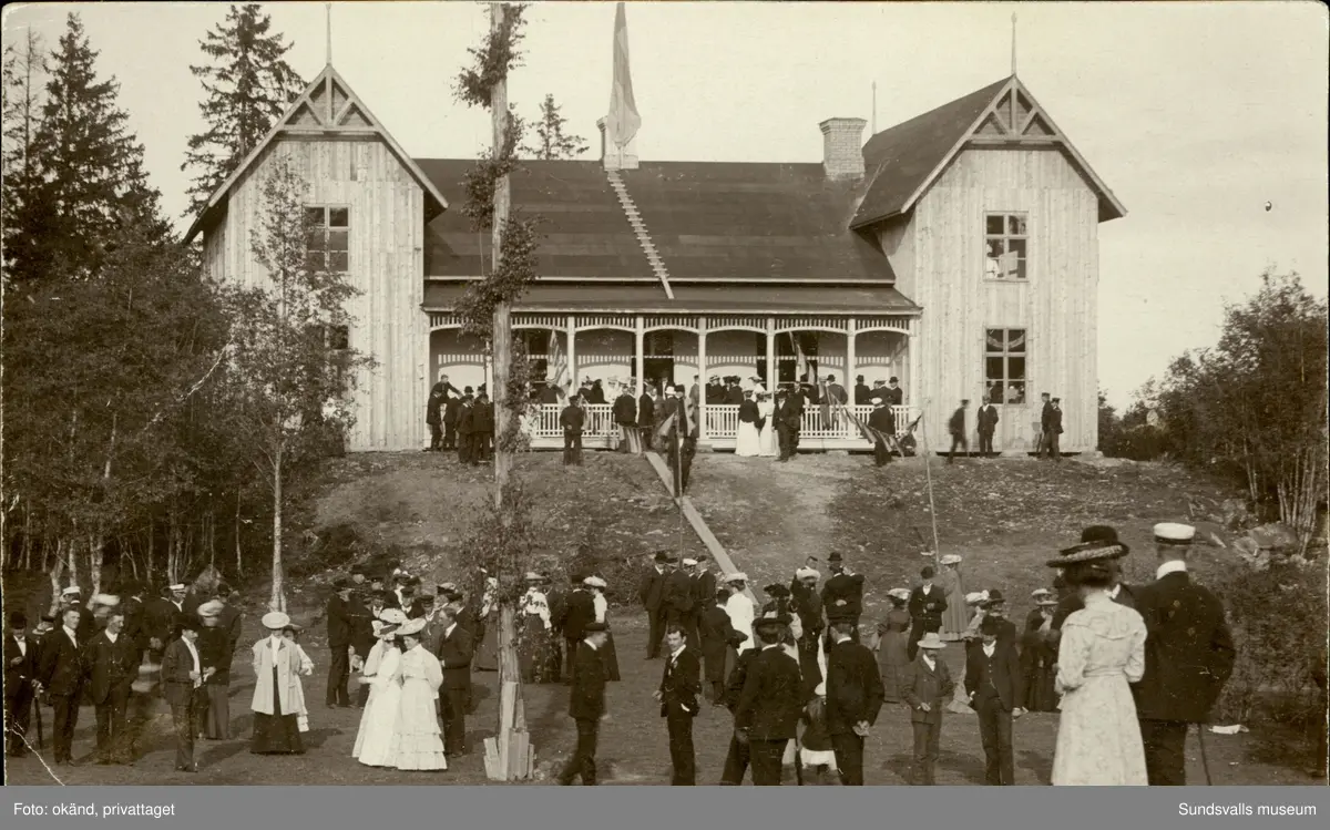 Vykort med motiv av ett sommarfirande. Enligt texten på baksidan: Värstaborg i Njurunda.